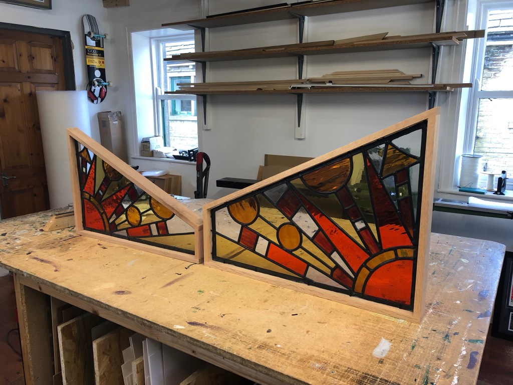 Framed using 4.4 laminate glass (UV protected), hand stained solid ash moulding, reinforced with a hardwood subframe for extra support.